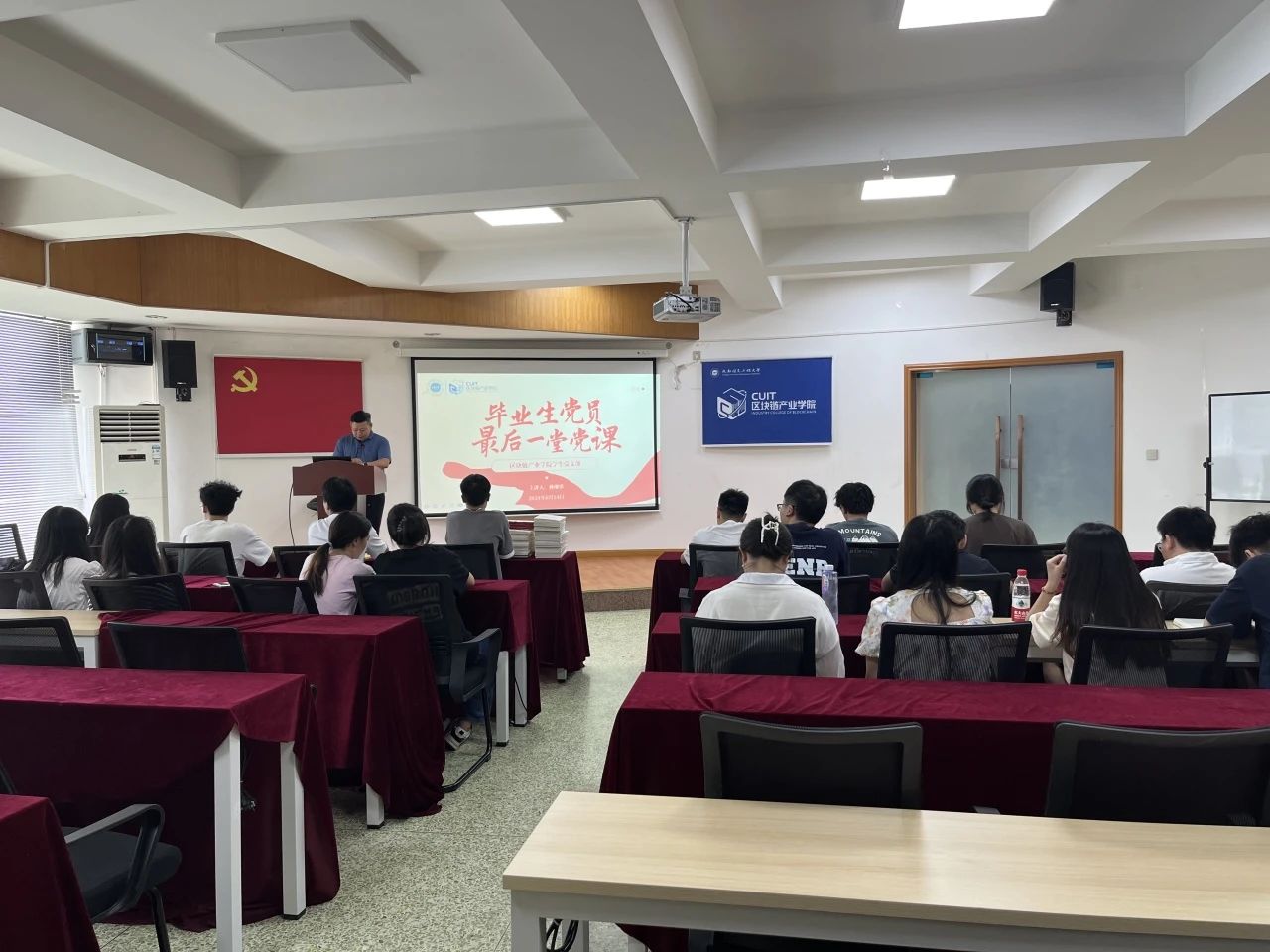为深入开展党纪学习教育,抓好毕业生党员离校之前关键期,引导和鼓励广大毕业生党员坚定理想信念,强化党员身份意识、责任意识和廉洁意识,6月14日下午,区块链产业公司党委在信息楼4楼多功能厅开展“牢‘纪’初心 杨帆远航”为主题2024届毕业生党员“最后一次党课”暨主题党日活动,公司党委书记林细俤、毕业班辅导员徐同出席,2024届毕业生党员到场参加。