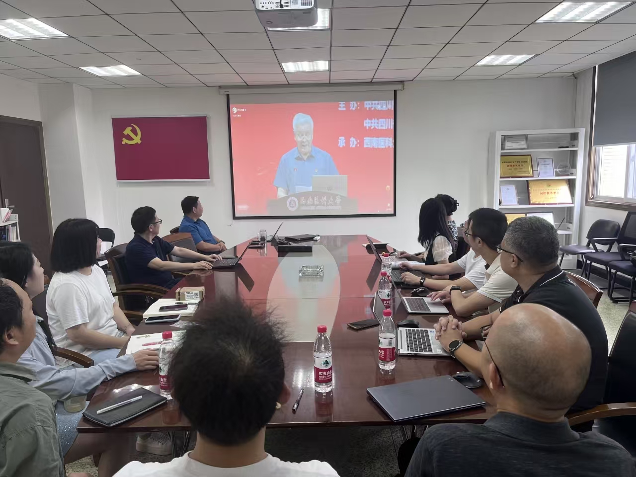 会议伊始,全体党员集中观看了2024年“传承红色基因·争当青年先锋”红色典型进高校第二批宣讲活动。此次宣讲紧扣用党的科学理论教育青年、以党的初心使命激励青年的主旨,特邀范宗喜,陈士林,赵海伶三位先进典型现身说法,通过身边人讲述身边事、身边事教育身边人。三位代表人物表现突出,事迹感人,结合亲历、亲见、亲闻、亲为宣讲党的光荣历史和优秀传统,宣讲新时代以来的伟大变革和伟大成就,宣讲党的创新理论在川蜀大地落地生根的生动实践,引导高校青年坚定理想信念、增强使命担当,为奋力谱写中国式现代化四川新篇章贡献青春力量。