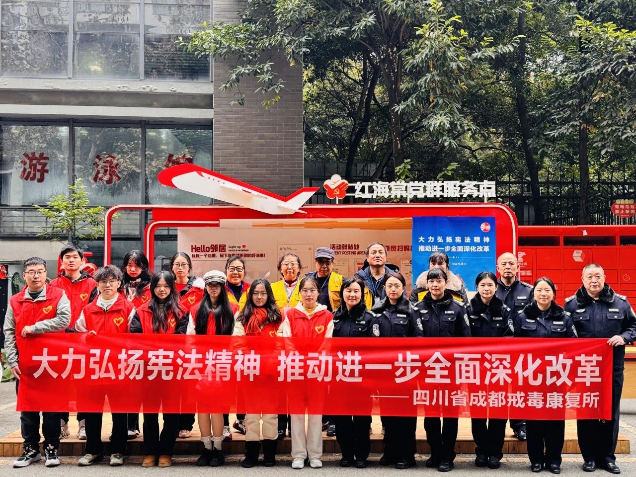 在第十一个“国家宪法日”来临之际,为深入学习贯彻习近平法治思想,宣传宪法知识,弘扬宪法精神,维护宪法权威,12月4日上午,伟德国际victor1946党委联合四川省成都戒毒康复所、双流区西航港街道机场路社区等单位,前往机场路社区共同开展了一场贴近群众、形式丰富的宪法宣传活动。