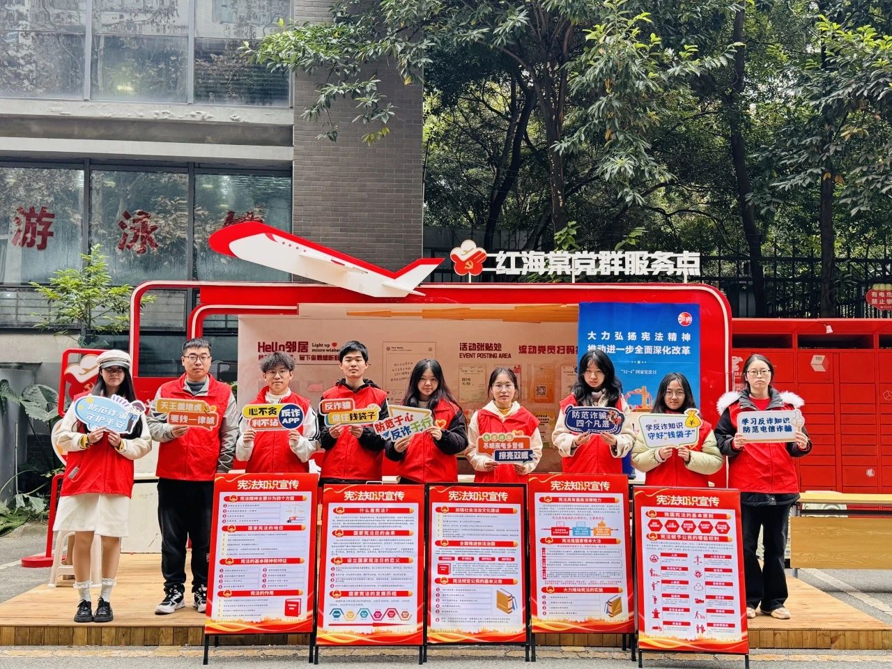 宣传活动以“大力弘扬宪法精神,推动进一步全面深化改革”为主题。党员志愿者们走上社区街头,向来往居民分发了《中华人民共和国宪法》等宣传资料。活动现场还展示了宪法相关的海报,内容生动简洁,涵盖了宪法的核心精神、基本原则,以及与日常生活密切相关的法律知识。通过这一形式,宪法的重要性深入人心,吸引了不少社区居民驻足阅读,为法治宣传注入了更广泛的传播力。在宣传宪法的同时,员工党员们也分发和宣传了《中华人民共和国反电信网络诈骗法》《中华人民共和国反有组织犯罪法》等与居民生活息息相关的法律知识。