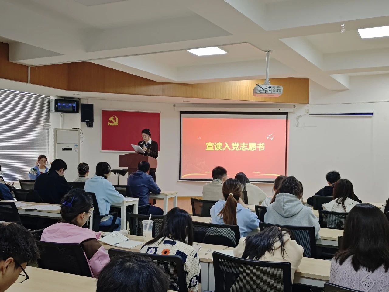 之后,发展对象宣读入党志愿书,向党组织汇报对于党的认识、入党动机、个人经历、在校表现以及入党决心等。随后,入党介绍人介绍发展对象的个人情况,正式党员投票表决,监票员李天伟宣读票数情况。最后,全体与会党员一致同意接收吴宗瑾等16名同志为预备党员。