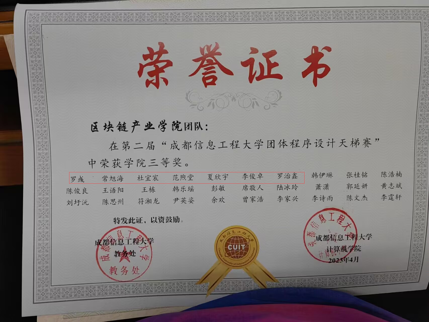 班级介绍区块链工程221班是一个充满活力与创造力的集体,由一群充满朝气、热爱学习的同学组成。我们秉承着“自信、自尊、自主、自立、自强”的坚定信念,以“链上共筑梦想之船,放眼未来起航杨帆”为班级口号,立志提升个人能力,展示自我风采,为班级争取荣誉,为班级增添光彩。班级注重每个成员的全面发展,不仅关注学术成绩,也重视综合素质的提升。同学间相互鼓励各自发挥自己的特长,培养个人的兴趣爱好,提升自我领导力、团队协作能力和创新思维。