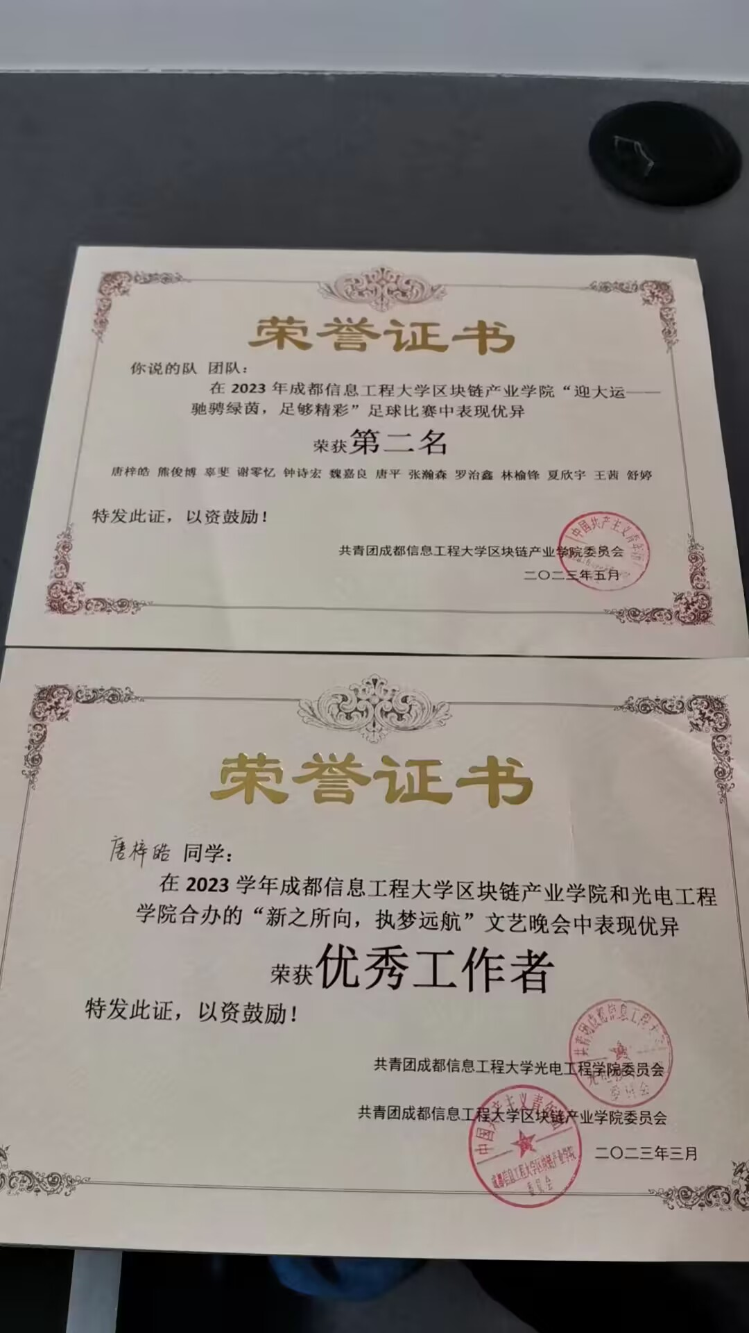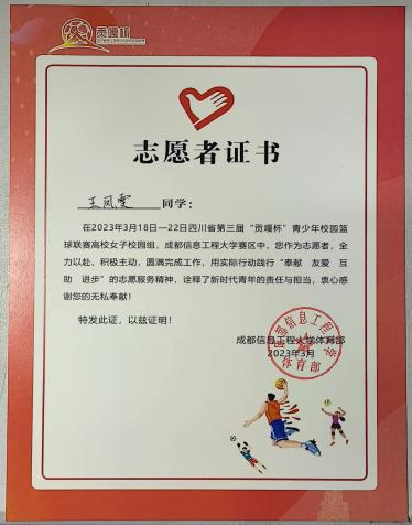 2.文体活动方面:班级在体育比赛上表现优异,第一学期在学院拔河比赛中取得三等奖,第二学期在足球比赛、篮球比赛分别赢得第二名、优秀奖的好成绩。此外,班级也鼓励调动同学进行社会志愿服务实践并有成员获得相关志愿成就,如“成都第31届世界老员工夏季运动会”、“第二届中国数字高峰论坛”等。这些成绩充分展现了班级的团队精神。