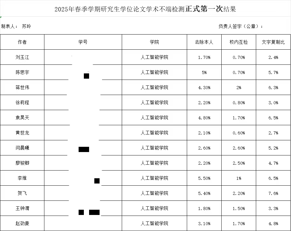 2025年春季学期研究生学位论文学术不端检测正式第一次结果